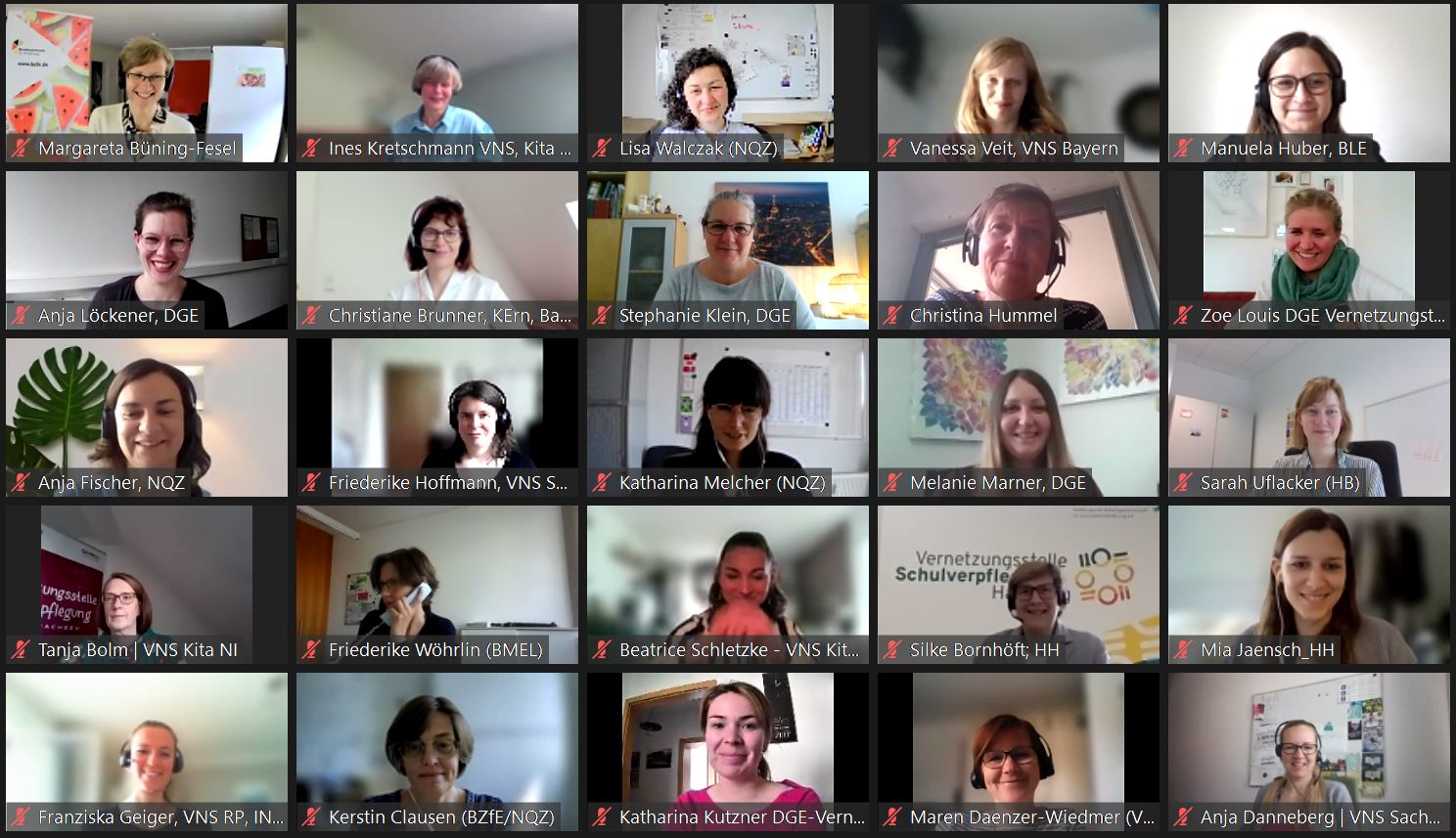 Auf dem digitalen "NQZ Vernetzungstreffen - Ernährung in Kita und Schule" standen Transparenz und Zusammenarbeit im Zentrum der gemeinsamen zwei Tage. Die Vertreter*innen der Vernetzungsstellen Kita- und Schulverpflegung gaben durch ausgewählte Berichte vielfältige Einblicke in die Aktivitäten auf Landesebene. Vorgestellte Highlights waren unter anderem ein im Aufbau befindliches Netzwerk für Schulträger in Niedersachsen oder die Nutzung eines Speisenplanchecks zur Qualitätsentwicklung und -sicherung in Thüringen. Neben dem NQZ teilten auch die weiteren Akteure – BMEL, BZfE und DGE – Einblicke in aktuelle Herausforderungen und Aktivitäten.