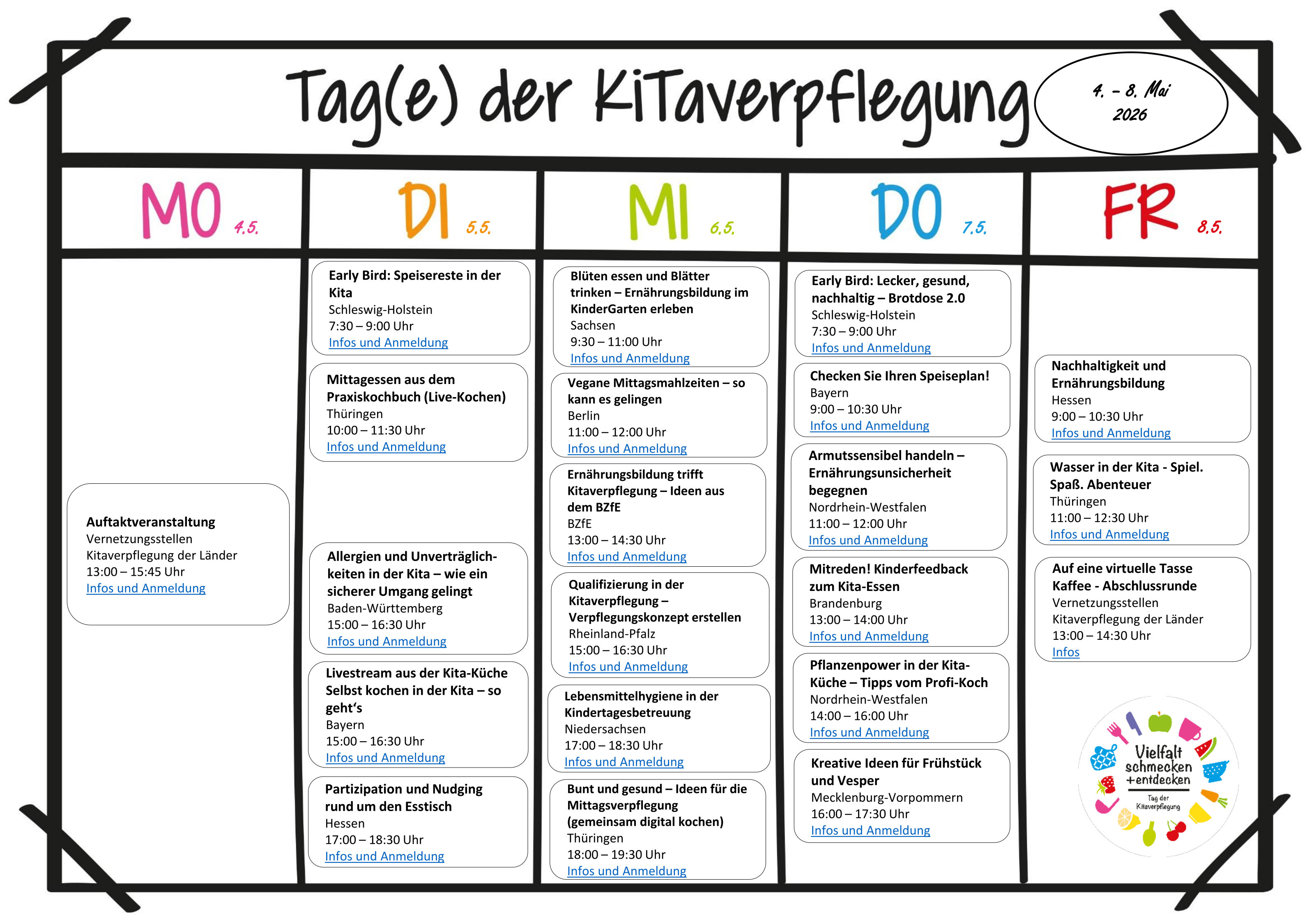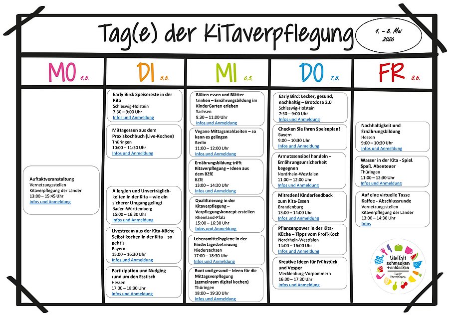Die Vernetzungsstellen Kitaverpflegung der Bundesländer laden Sie herzlich zu den Tagen der Kitaverpflegung 2026 ein: