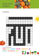 Was kann man aus Kürbissen machen? Im Suchsel rund um den Kürbis finden Grundschulkinder Ideen, wie man Kürbisfleisch verarbeiten kann.